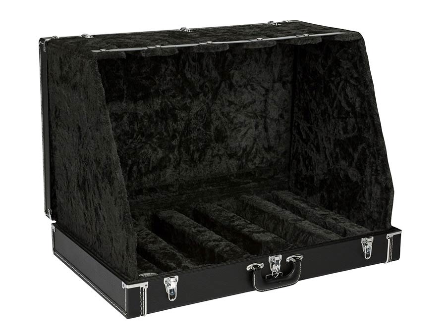 Fender Instrument Case Stands are a great way to display and protect multiple instruments. This case stand looks like a traditional case but easily turns into a stage-worthy guitar stand. Crafted with road-reliable materials, this 3-ply hardshell wooden case boasts a vinyl-wrapped steel carry handle and steel latches. The soft, crushed-acrylic plush interior lining ensures your guitars remain scratch and damage-free.