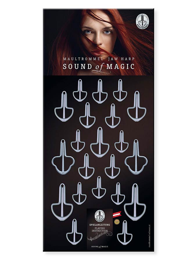 Classic mouth harp display card, with 21 mouth harps, mat silver
