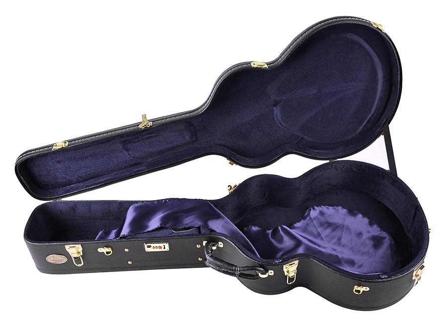 deluxe koffer voor jazzgitaar (18 inch), hout, gewelfde vormkoffer, met slot en schouderriem