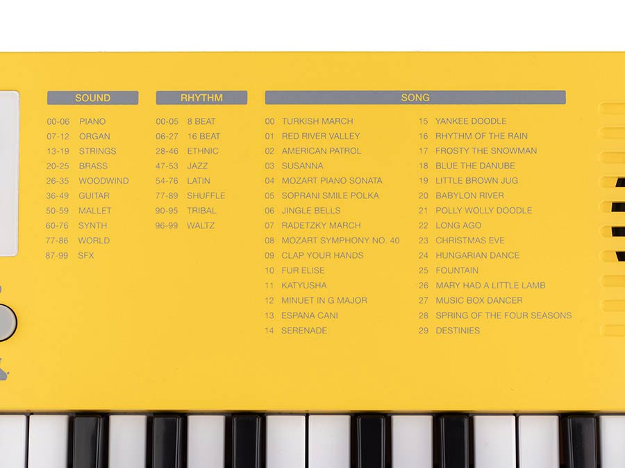 keyboard, 37 mini-size keys, with USB-C cable for power supply, 1 x 2 W – yellow