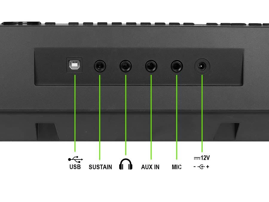 The 240 styles are also supported by 128 polyphony technology to ensure a full band backing effect without a dropping note. 160 classic songs are on board to be played with the Music Tutorial System, which is designed to teach beginners rhythm and music notation. You can also record up to 10 songs to be replayed on the keyboard in the future. Simply plug a music player into the Aux In jack and a microphone into the Mic jack, you can instantly play and sing along to your favorite song.