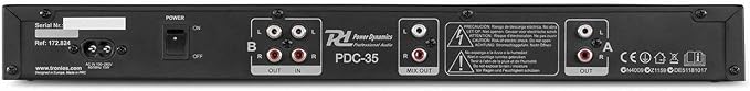 - Uitgang: omdat de PDC-35 eigenlijk twee spelers in één behuizing heeft, heeft elk deck ook zijn eigen uitgang. Zo kun je beide decks apart bijv. op een mengpaneel aansluiten. Voor de veeleisende gebruiker is er een gemengde enkele uitgang voor beide decks.