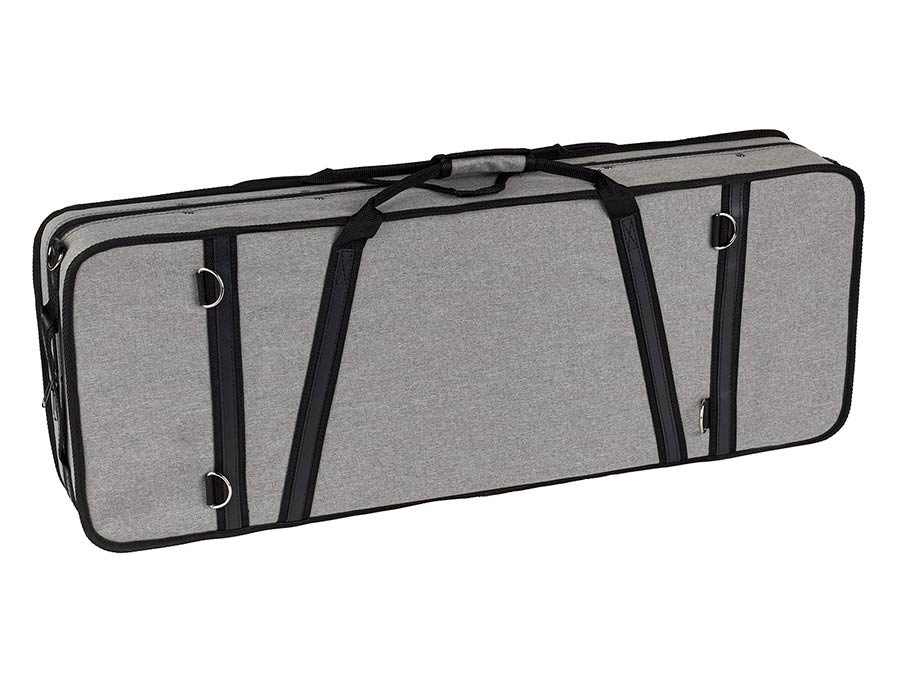 - Oblong case in polyfoam with 2 rucksackstraps, a closed space for accessoires and 4 bow holders
